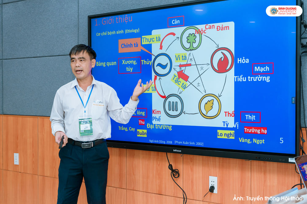Bên cạnh hướng tiếp cận công nghệ cao, Viện Đào tạo và Nghiên cứu Dược học còn trình bày hai báo cáo chuyên đề mang tính ứng dụng thực tiễn. TS Lê Văn Út – Phó Viện trưởng – giới thiệu kết quả nghiên cứu “Khảo sát khả năng kháng khuẩn và kháng oxy hóa Ô rô nước (Acanthus ilicifolius L.)”, góp phần định hướng khai thác, sử dụng nguồn dược liệu tự nhiên. TS Huỳnh Lời – Trưởng Bộ môn Dược học – trình bày báo cáo “Bào chế và đánh giá chất lượng sirô lục vị”, nhấn mạnh yêu cầu chuẩn hóa quy trình và kiểm soát chất lượng trong phát triển chế phẩm dùng trong chăm sóc sức khỏe cộng đồng.